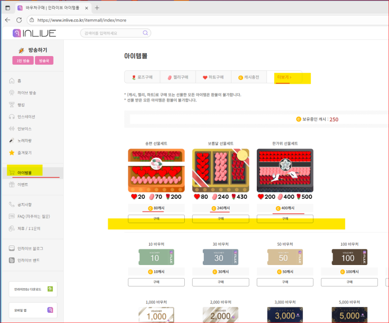 ...........[아이템물 >더보기> 구매 > 상대방 대명 > 보내기